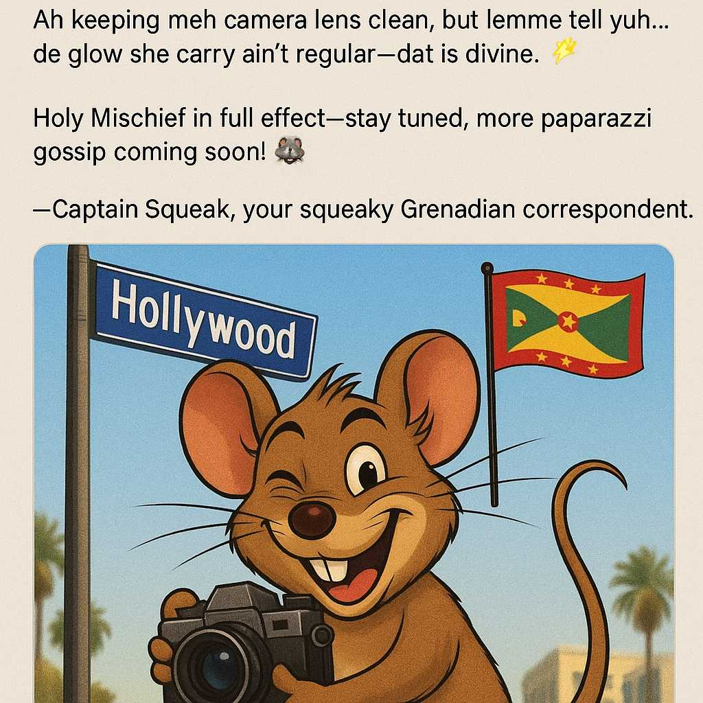 “Big tings ah gwan! Queen Deann just touch down and the whole a Hollywood brighten up like Carnival Monday morning. Coconut trees in Grenada whisper, ‘Dat is we girl!’ 🌴💃